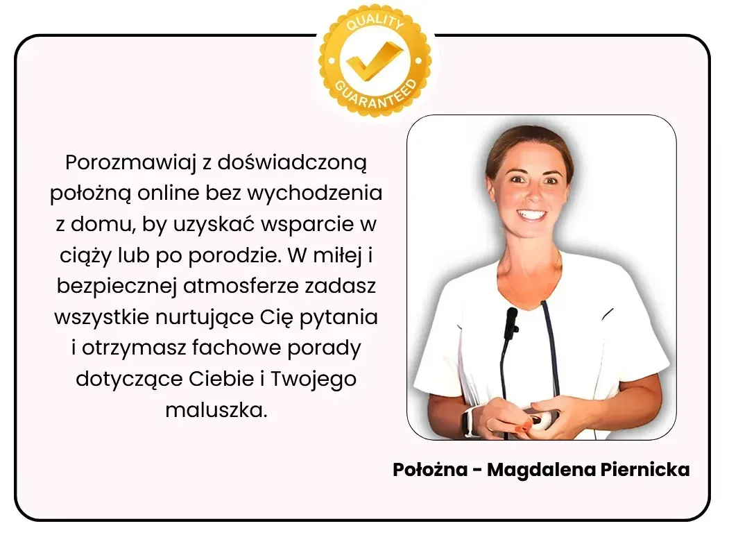 Wstępne ustalenia: Położna potwierdzi Twoje dane osobowe i zgodę na rozmowę. Zapyta o cel konsultacji (np. ciąża w którym trymestrze lub ile czasu minęło od porodu) oraz o ewentualne problemy techniczne (dźwięk, obraz wideo).